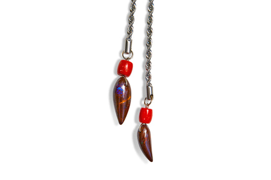 Garnet Coral Bone and Opal Bolo Tie